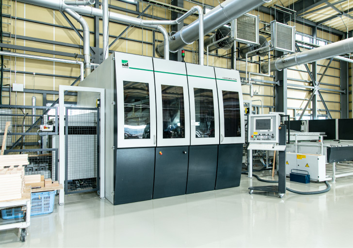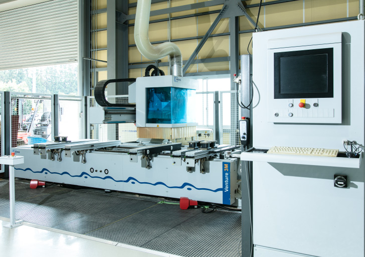 弊社最大の特徴は、5軸NC加工機をはじめ、エッジバンダー付きNC加工機を所有しているなど、木工加工機の充実です。一般的に木製品製造工場にある機械はもちろんですが、より精度の高い加工を目指すための加工機を所有しており、それぞれの機械の特徴を生かした加工をし、製品を作っています。