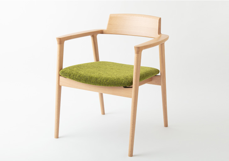 椅子の作業では、塗装が終わったフレームに張加工をします。オーダーに合わせて張地をカットし、必要があれば縫製をしたものを張っていきます。