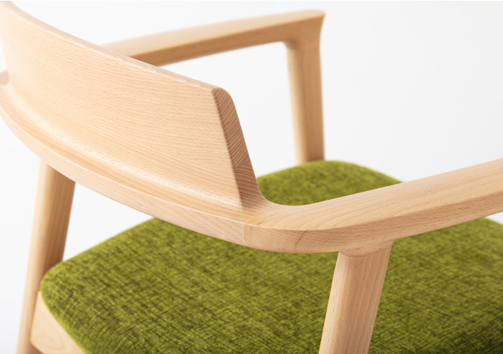各種類の木材をカット・木取をします。天板の生産はプレスをし、椅子・テーブルの脚などの材料は、モルダーで均一な大きさの材料にします。