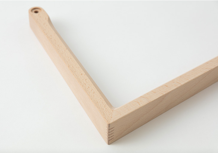 磨きの終わったパーツを、プレス機を使って組み立てます。椅子の強度にかかわる重要な工程なので、ボンドの量や組み立てるときの角度など、いくつもの作業チェックをしながら組み立てていきます。